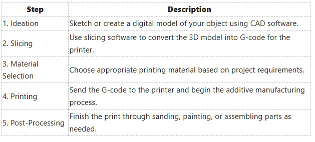 R : Les imprimantes 3D utilisent un processus appelé fabrication additive, où elles construisent des objets couche par couche à partir de matériaux comme le plastique, le métal ou la résine sur la base d'un fichier de conception numérique.