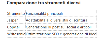 - I strumenti di intelligenza artificiale possono generare articoli, post sui social media e altri formati di contenuto in base a parametri specifici.