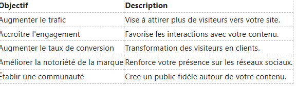 En posant des objectifs mesurables, vous pouvez également identifier ce qui fonctionne et ce qui doit être ajusté. Cela crée un cycle d'amélioration continue qui favorise le développement de contenu efficace et engageant. En fin de compte, des objectifs précis offrent une orientation qui vous permet de rester aligné avec votre vision à long terme.