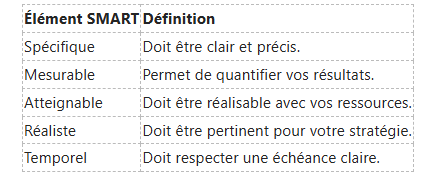Les objectifs SMART, qui sont spécifiques, mesurables, atteignables, réalistes et limités dans le temps, représentent un cadre efficace pour définir vos ambitions. Par exemple, au lieu de dire "Je veux plus d'engagement sur mes publications", un objectif SMART pourrait être "Je veux obtenir 500 likes en un mois sur mes nouvelles publications". Cette approche vous permet d'avoir une vision claire de ce que vous souhaitez réaliser.