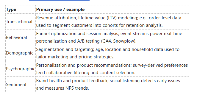 Knowing how to combine these sources - for example joining transactional LTV with behavioral churn signals and sentiment trends - lets you build models that commonly increase predictive accuracy above baseline by 20-40% in forecasting purchase probability.