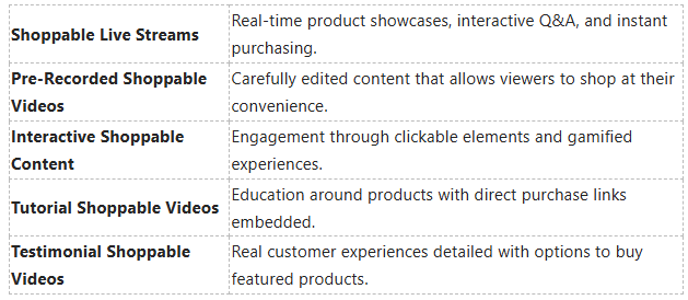 R : Les vidéos interactives permettent aux spectateurs de cliquer sur les produits présentés pour les acheter directement. Ce format enrichit l'expérience d'achat en autorisant des transactions instantanées tout en captivant l'attention grâce aux démonstrations de produits ou aux récits.