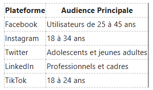 Chaque plateforme sociale a une audience unique. Par exemple, les utilisateurs de Facebook ont tendance à être plus âgés, tandis qu'Instagram attire un public plus jeune. Pour optimiser votre micro-contenu, vous devez comprendre les comportements et les préférences de vos utilisateurs cibles. L'analyse démographique, les centres d'intérêt et les heures d'engagement sont des facteurs clés à considérer.