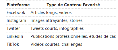 Types de Contenus Favorisés par Chaque Plateforme