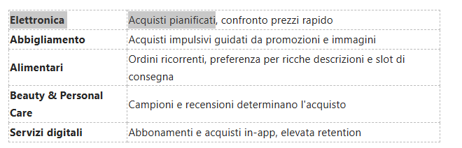 La différence de genre apparaît par catégorie : les femmes se convertissent principalement en mode et en beauté , en acquérant impulsivement une offre push, alors que les hommes montrent une propension plus élevée pour l'électronique et l'acquisition d'une haute valeur. Vous devez considérer que le carrello moyen et la stratégie de vente incitative varient considérablement selon l'état et le genre, avec l'abandon du carrello mobile qui peut arriver jusqu'à 85% sans intervention miraculeuse.
