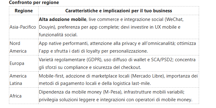 Si vous travaillez en Amérique Latine ou en Afrique, vous devez considérer que la plupart des consommateurs sont essentiellement « mobiles d'abord » : au Brésil et au Messie, le guide mobile de la grande partie du trafic et du marché comme le marché libre domine avec des solutions de paiement intégrées ; en Afrique, la diffusion de l'argent mobile (par exemple M‑Pesa au Kenya) rend possible le commerce électronique grâce à l'infrastructure bancaire traditionnelle qui est désormais obsolète. Ajustez votre priorité : optimiser la vitesse de retour lente, intégrer les méthodes de paiement locales et mettre en œuvre la différence entre l'application et le Web pour augmenter la conversion.