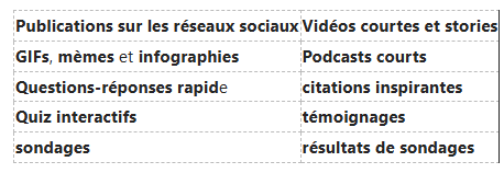 Enfin, il est intéressant de noter que le micro-contenu favorise la créativité . En vous limitant à des formats courts, vous êtes contraint de penser en dehors des sentiers battus et de produire des messages captivants qui résonnent instantanément avec votre public. Cela vous permet également d'expérimenter plusieurs formats et approches pour découvrir ce qui fonctionne le mieux pour votre marque.