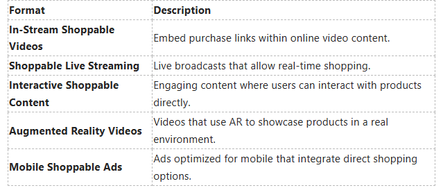 - Shoppable videos enable direct purchasing opportunities, enhancing user engagement.