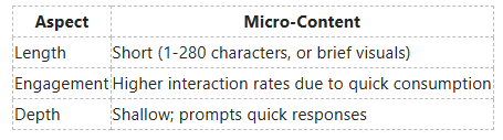 - Platforms favor fast-paced, engaging content, making micro-content ideal for attention spans on social media.